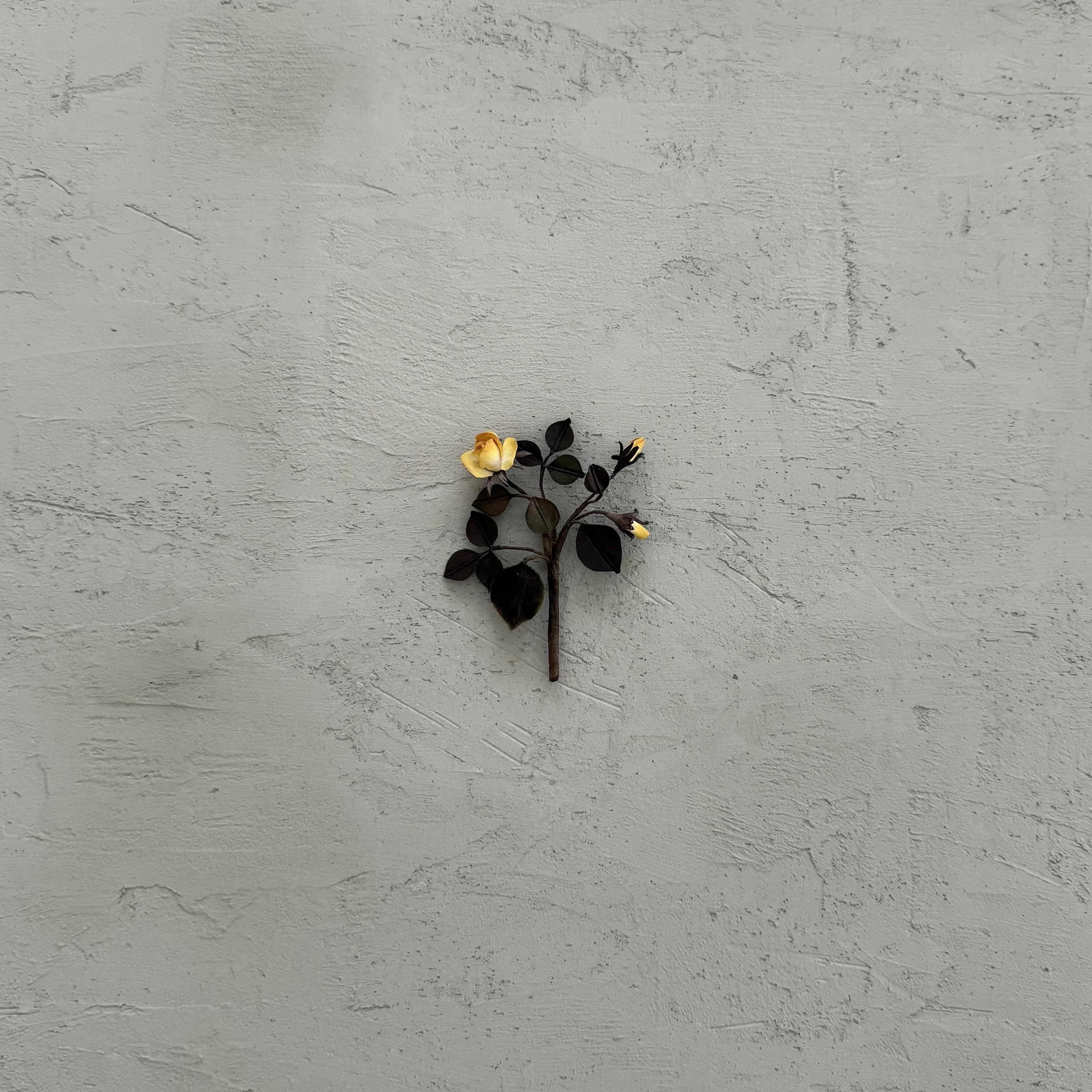 葉にやさしく包まれるように、小さな黄色の薔薇が咲くコサージュ。