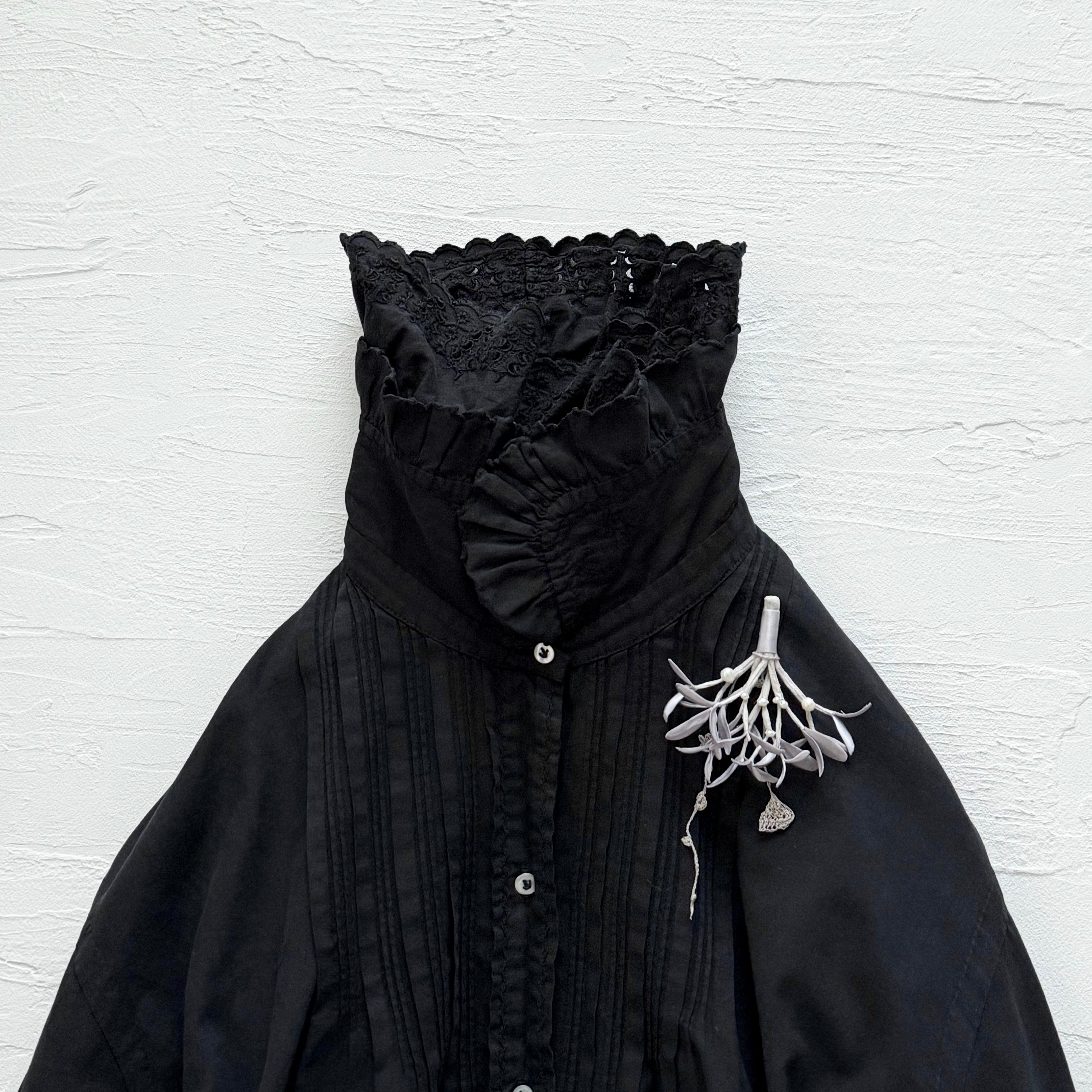 垂れ下がる手編みのレースはグレーに染め上げ、