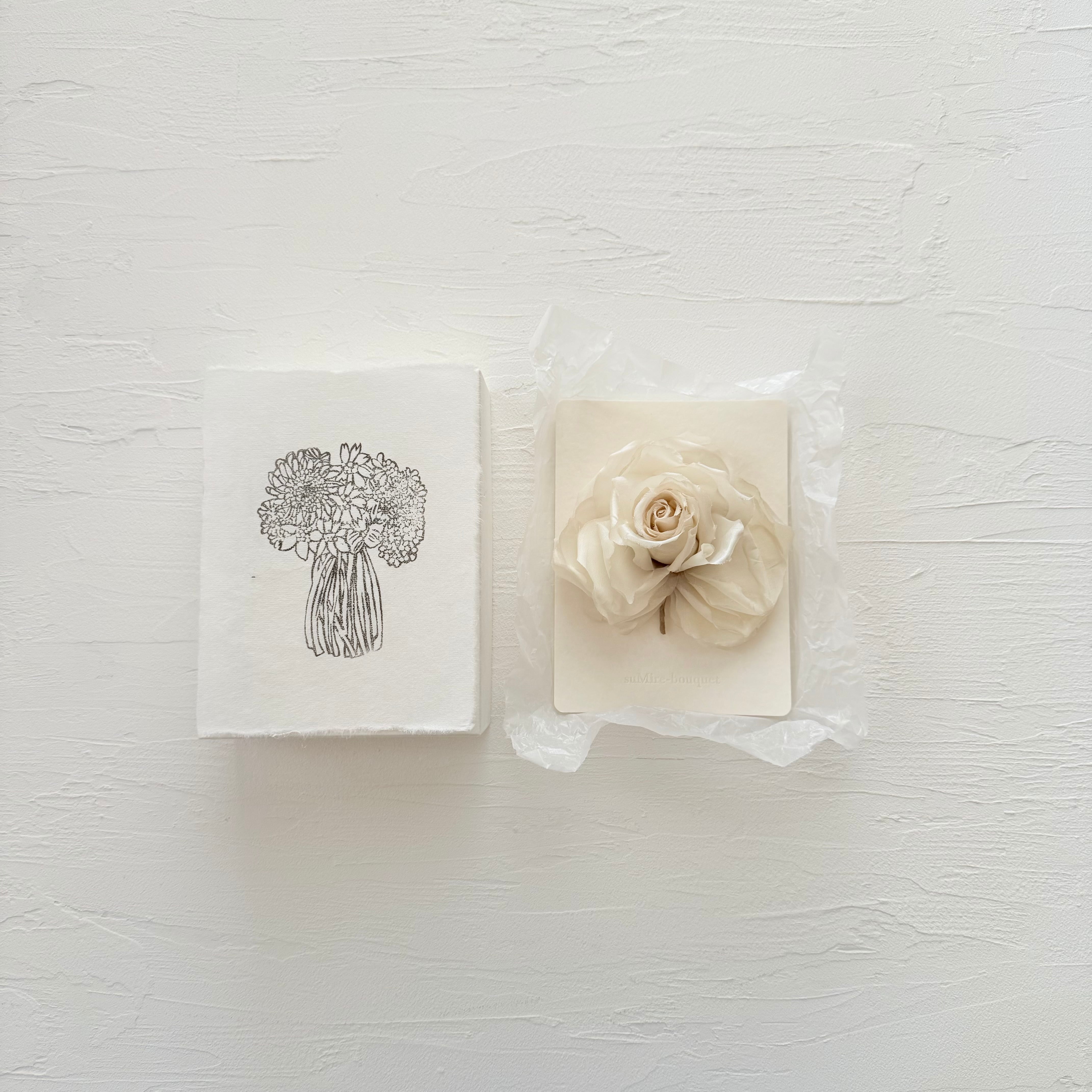 大輪の白薔薇を、本絹で丁寧に仕立てたコサージュです。