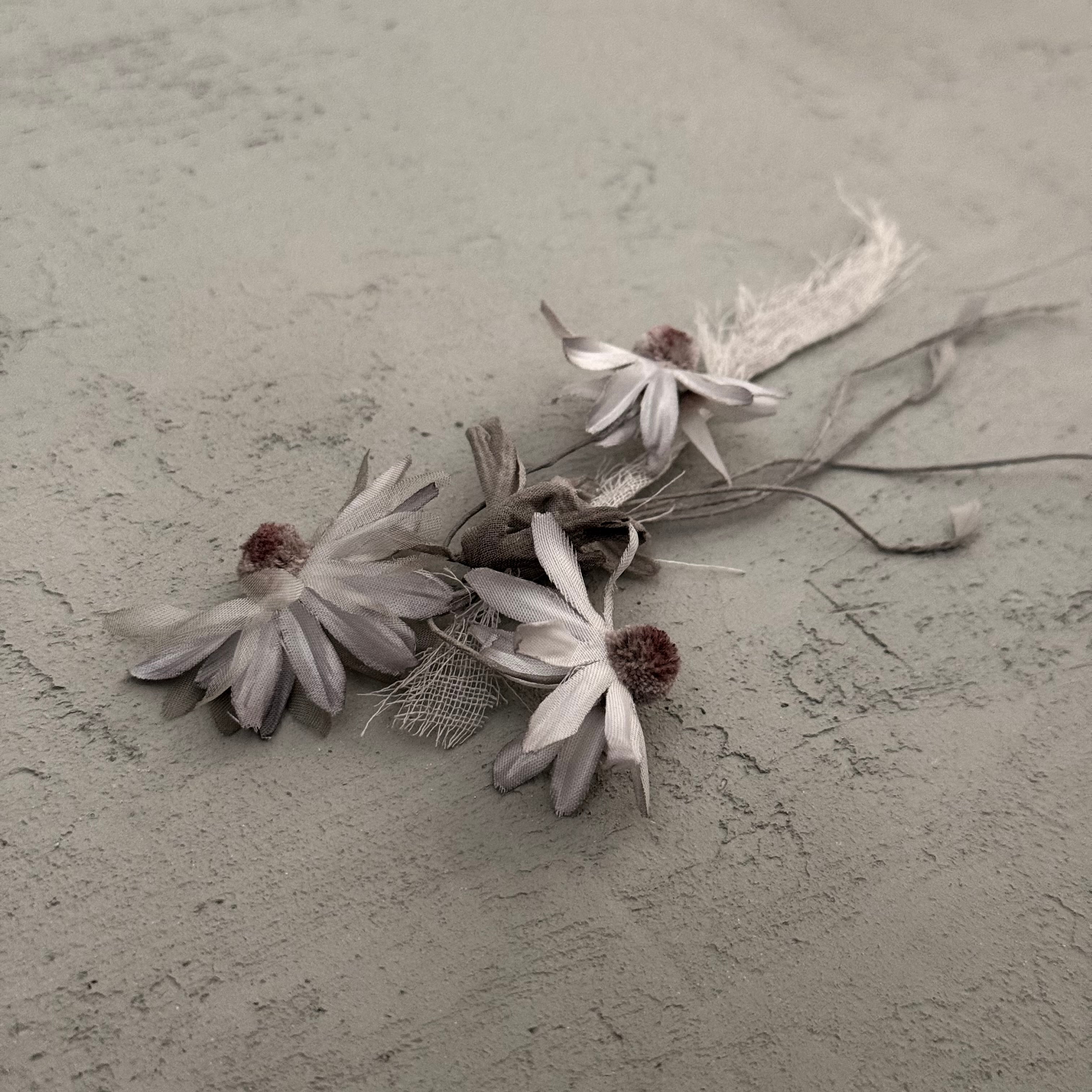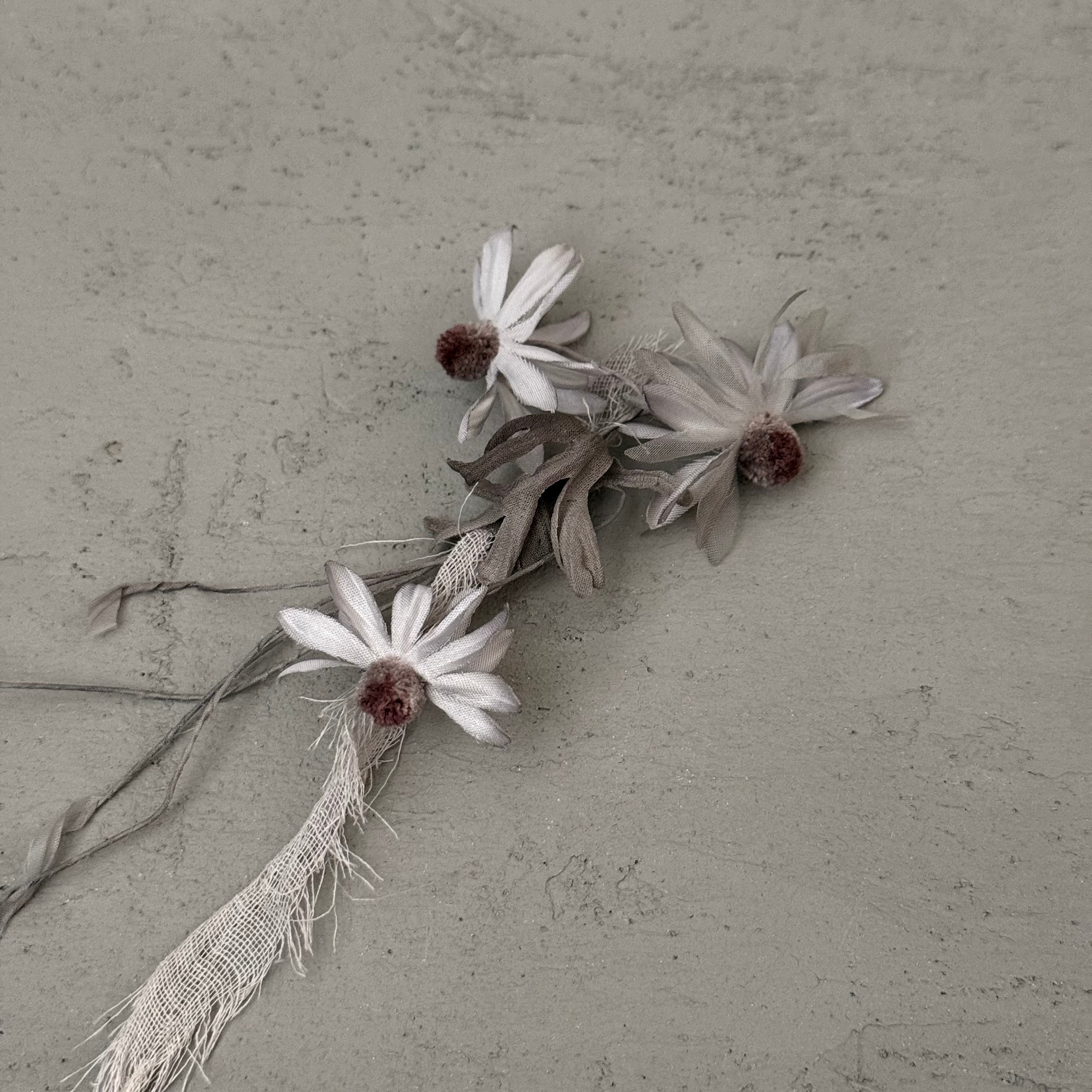 あちこちに向いた花、華奢な茎、動きのあるコサージュ。