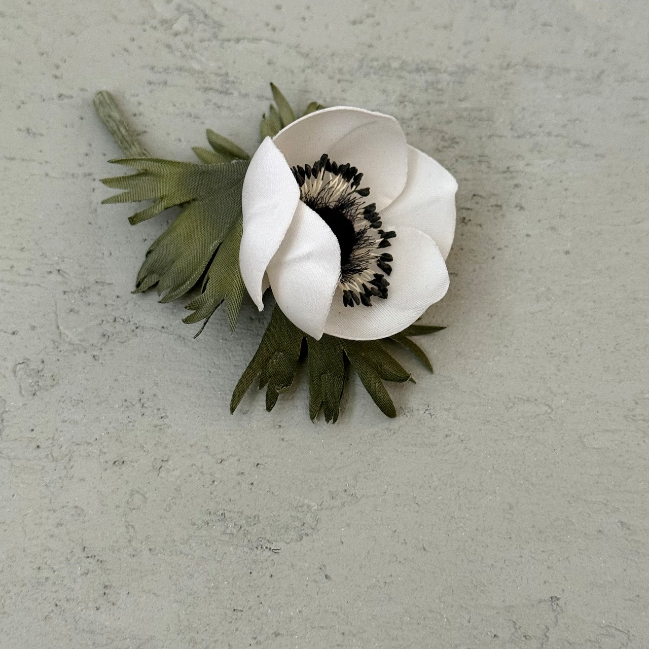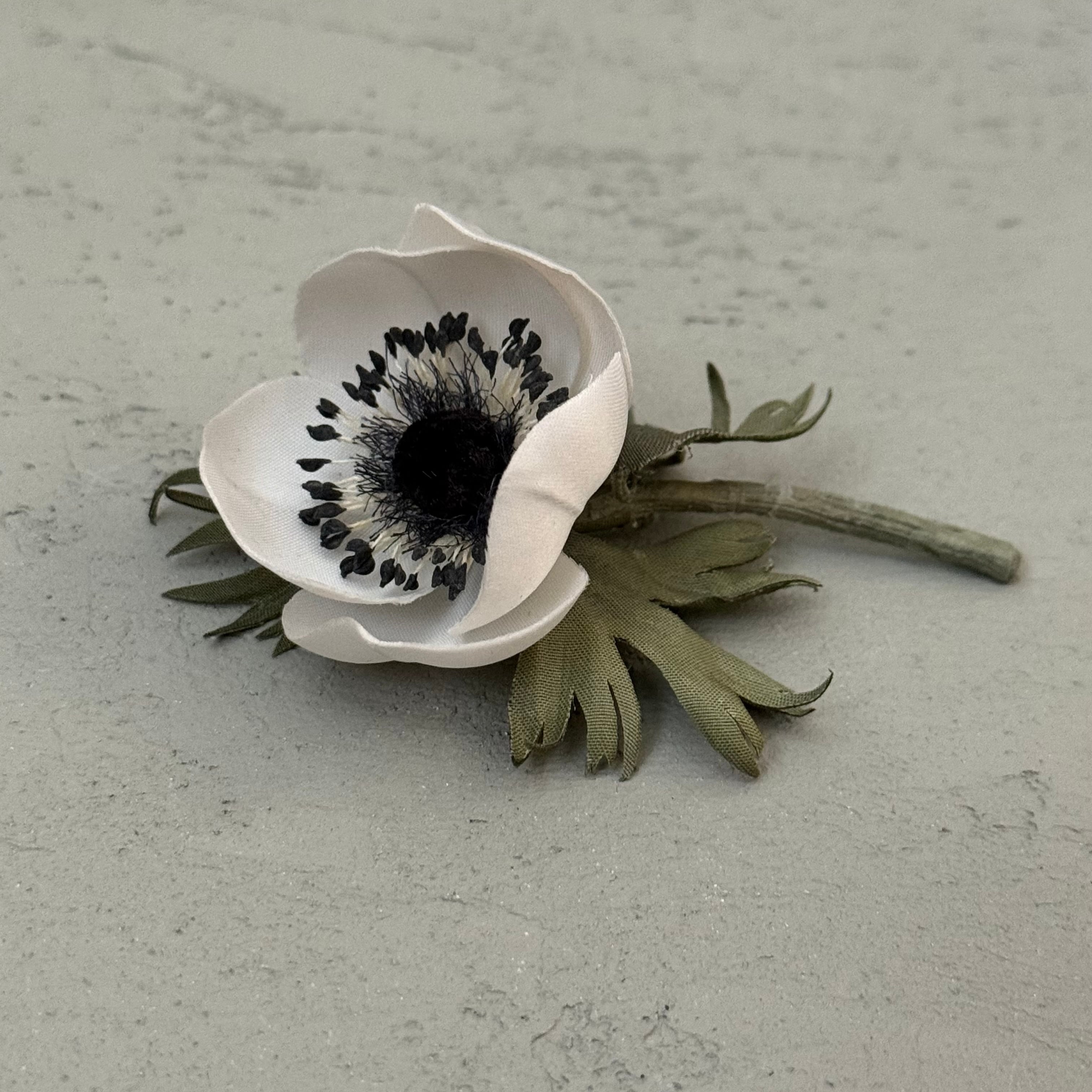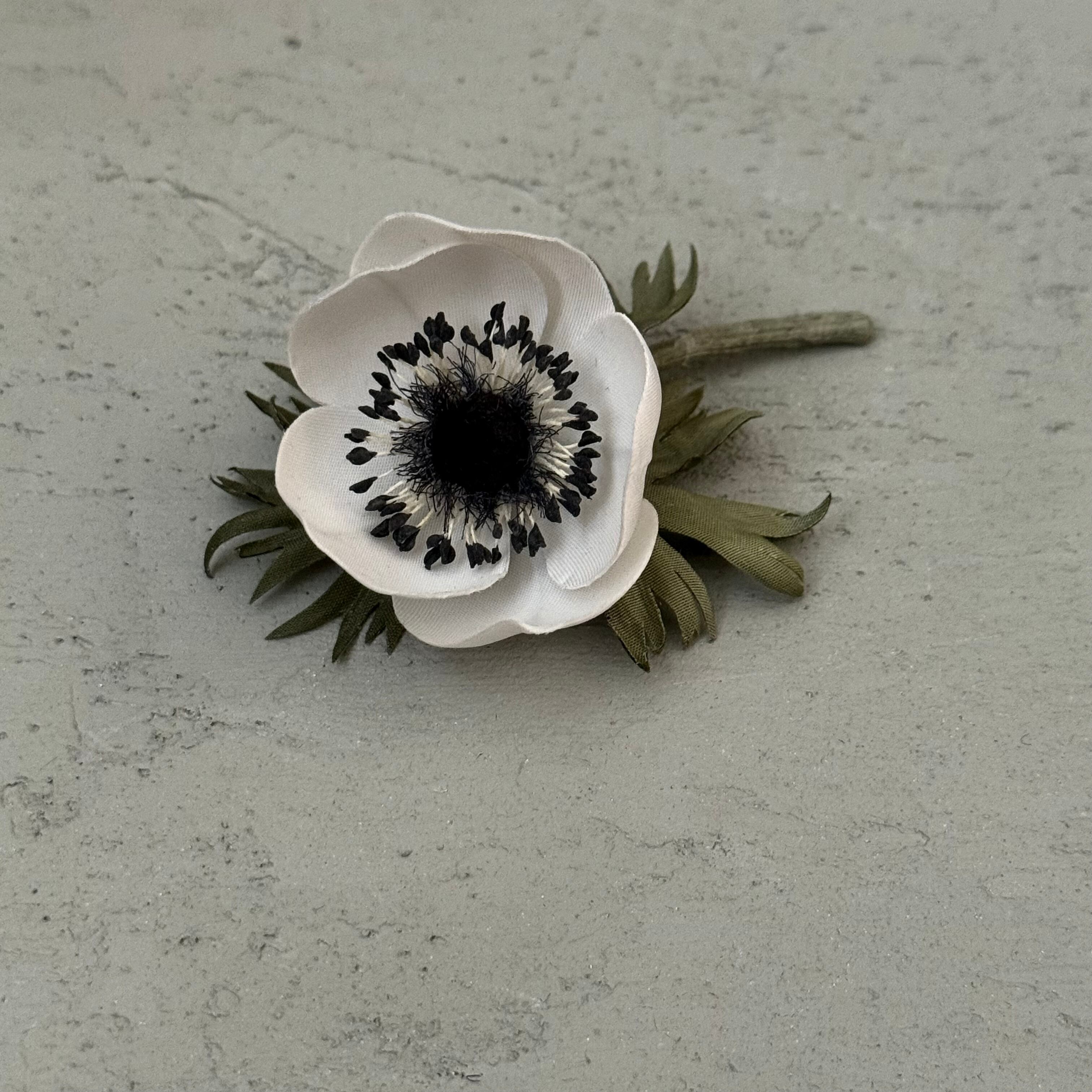 アネモネ〈マリアンヌパンダ〉をモデルに制作した布花コサージュです。