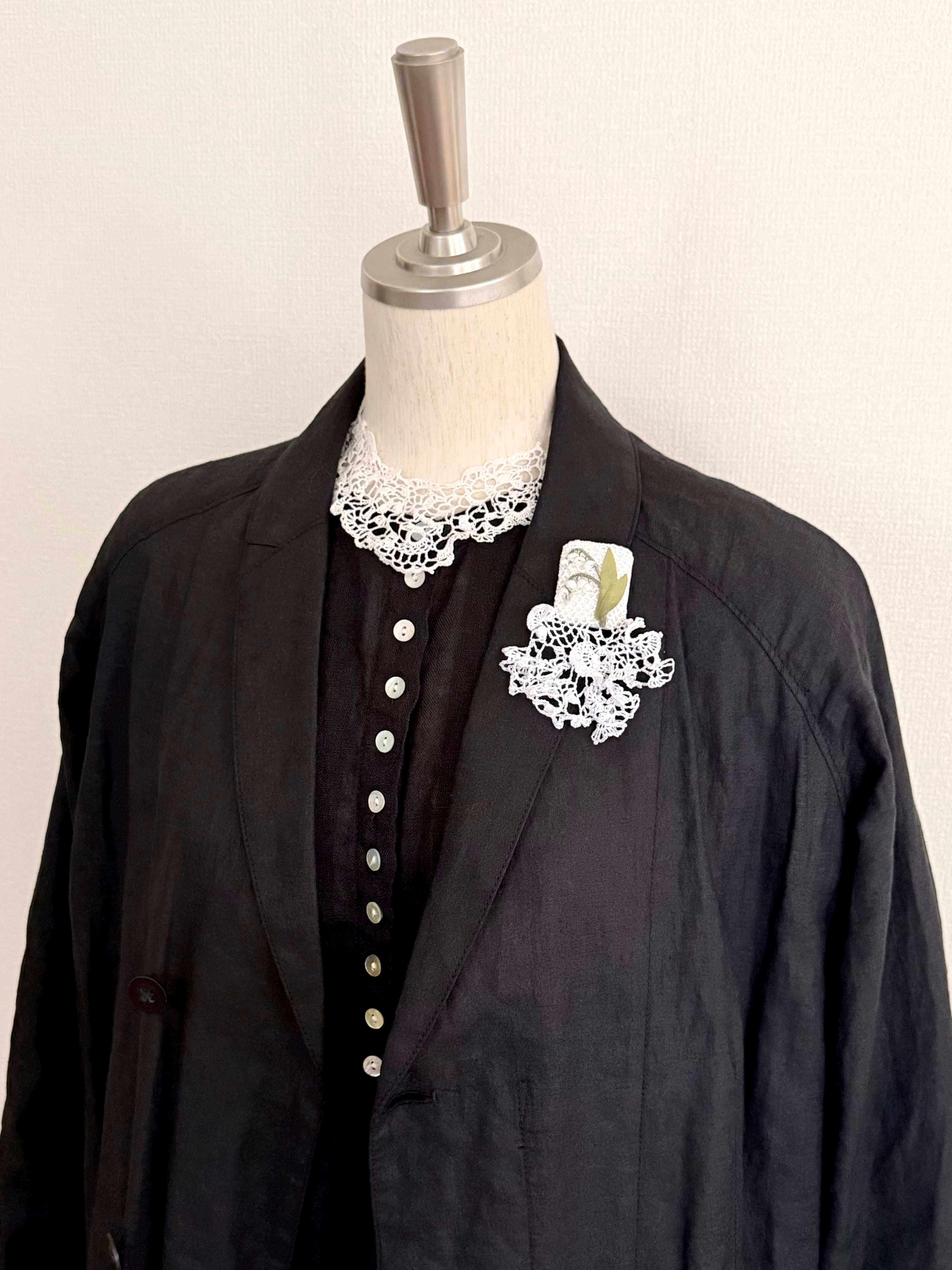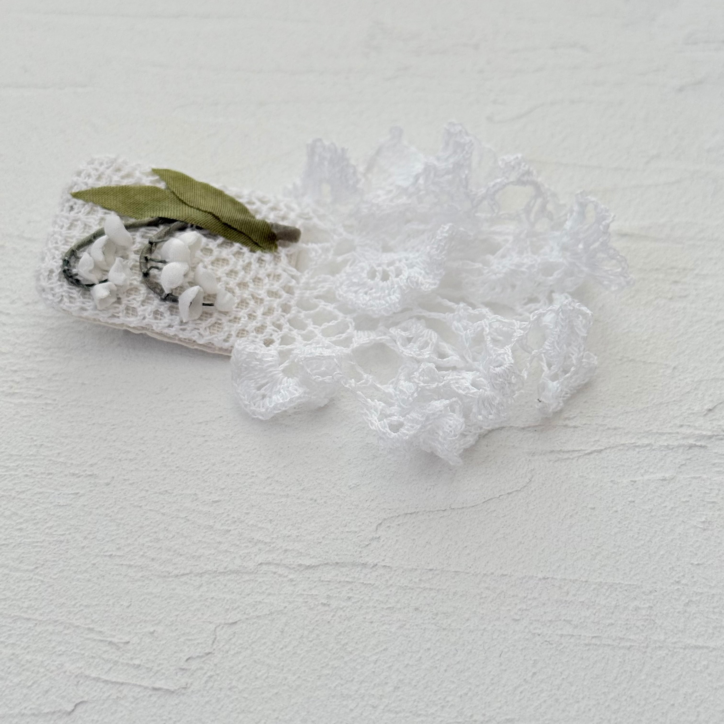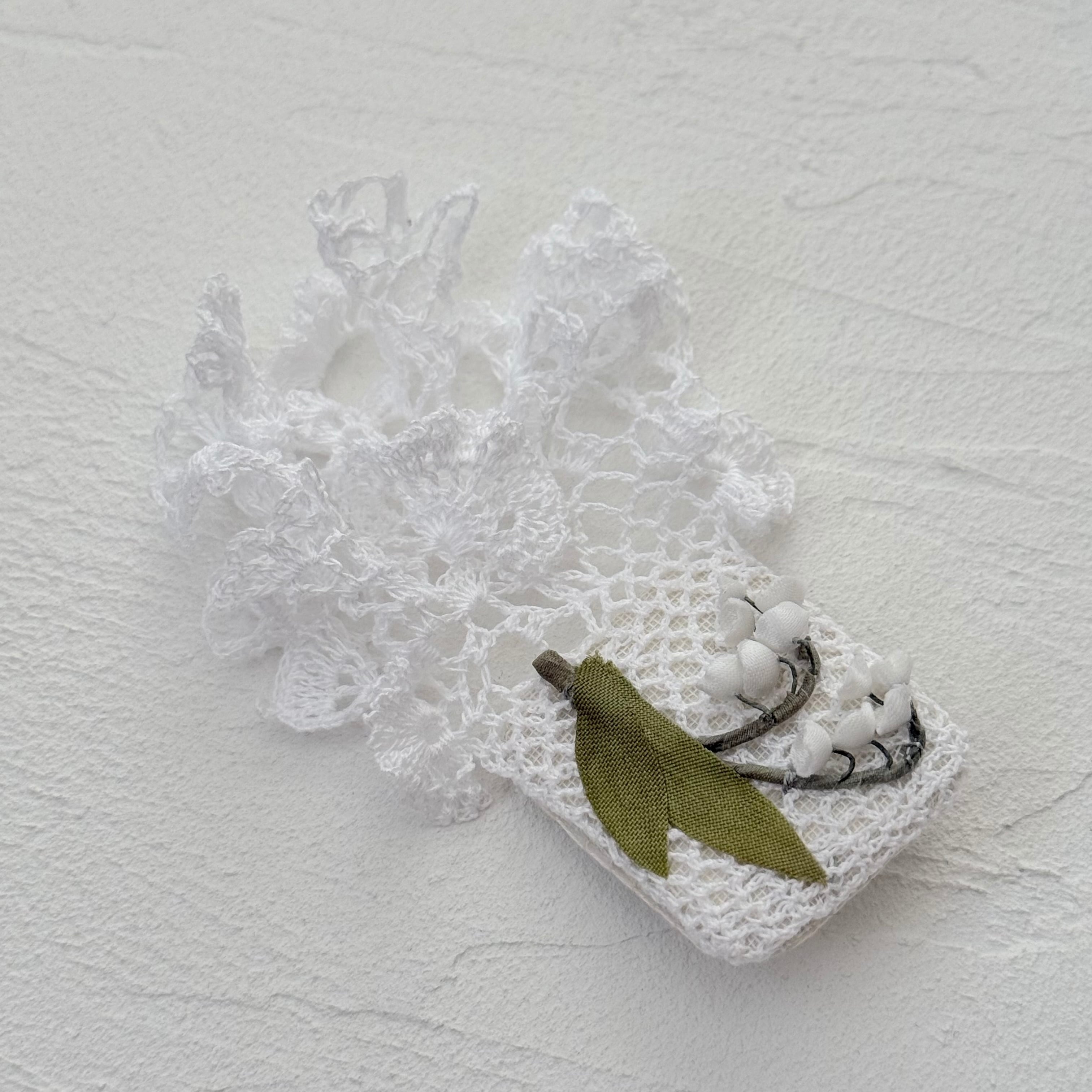 繋がるレースは、ランダムに広がるような編みにしました。ゆらゆらと自然に揺れて軽やかです。