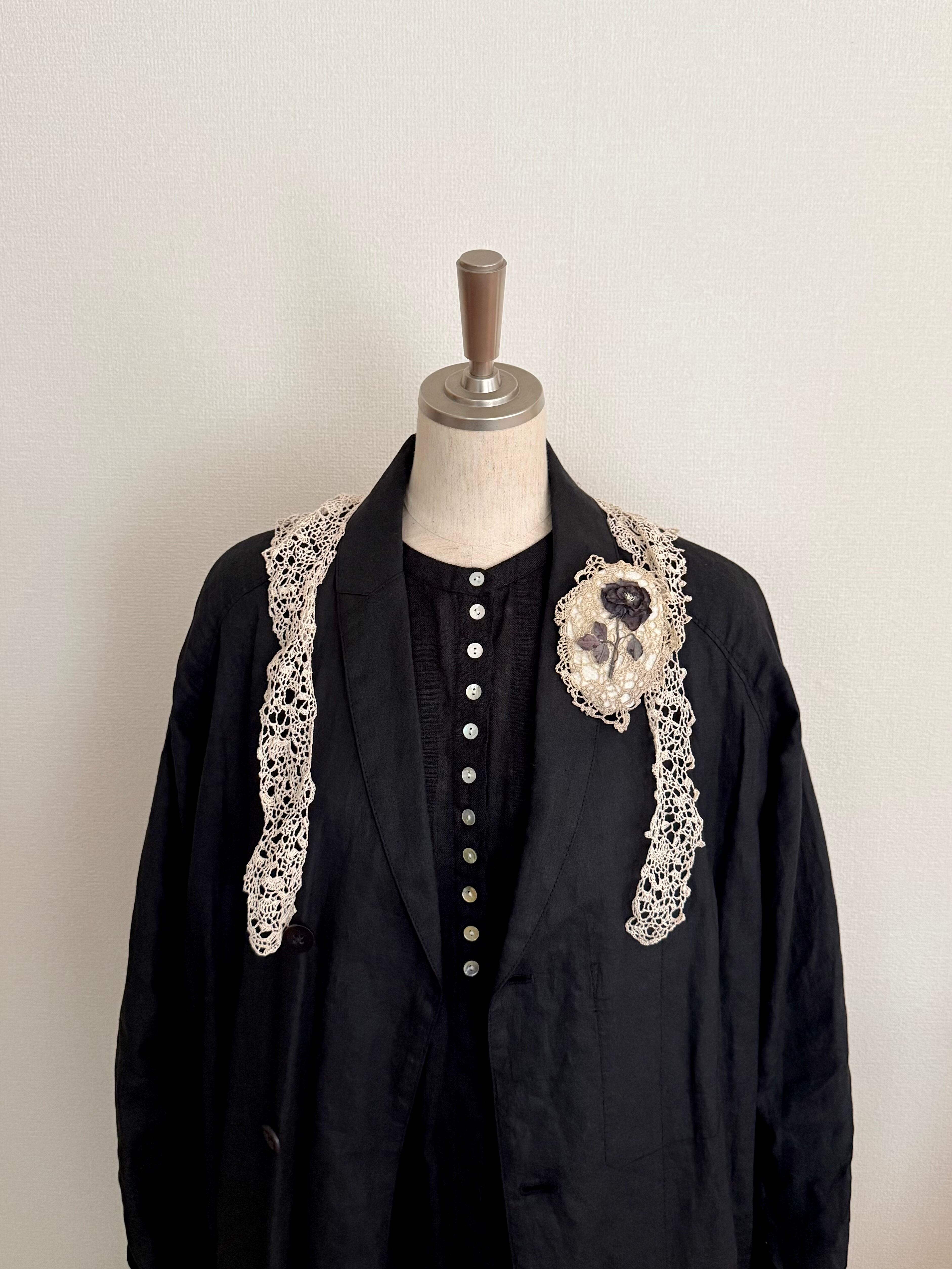 レース部分は、編み図を使わず自由に編み上げる「フリーフォームクロシェ」の技法で制作しています。