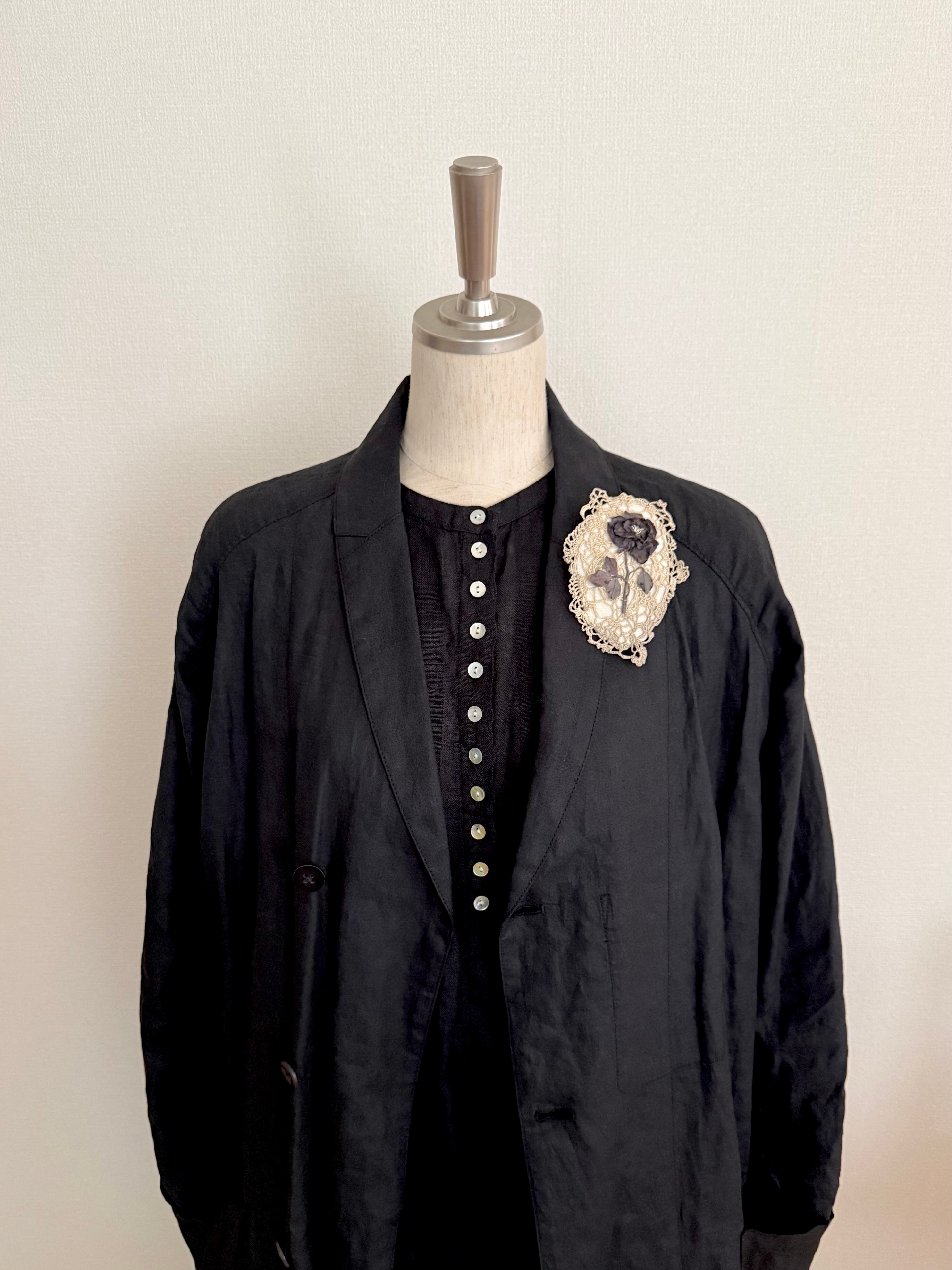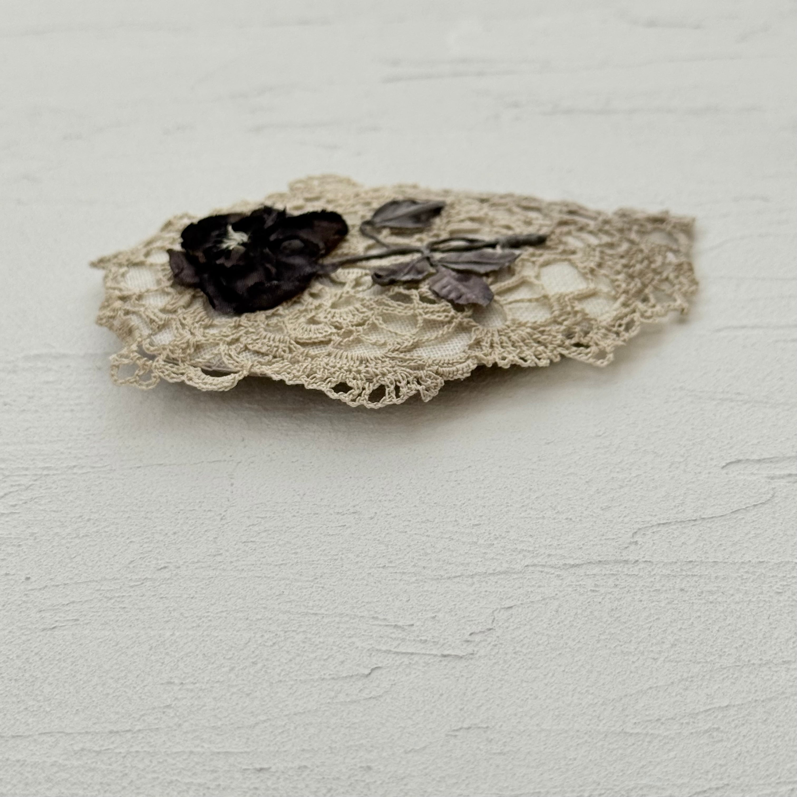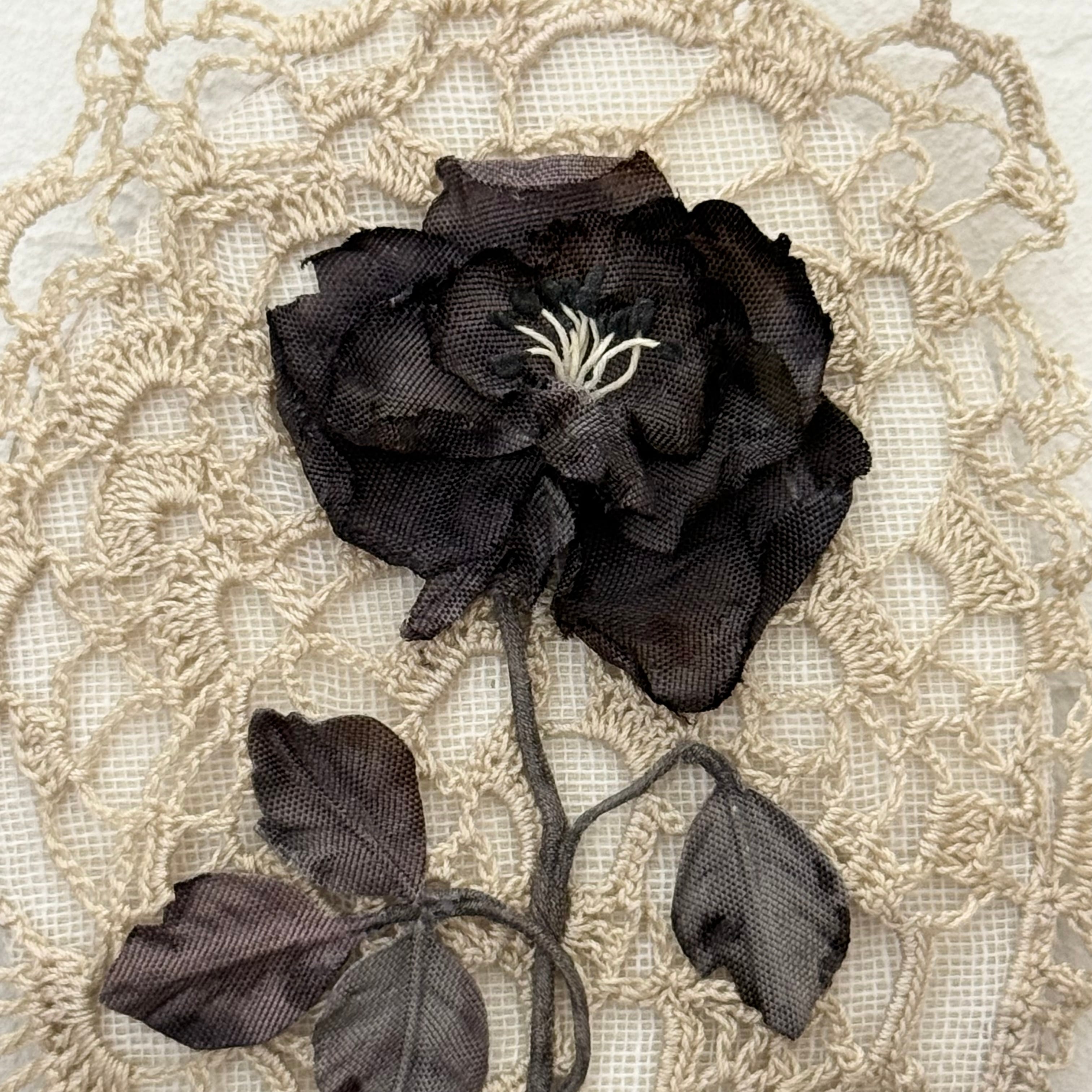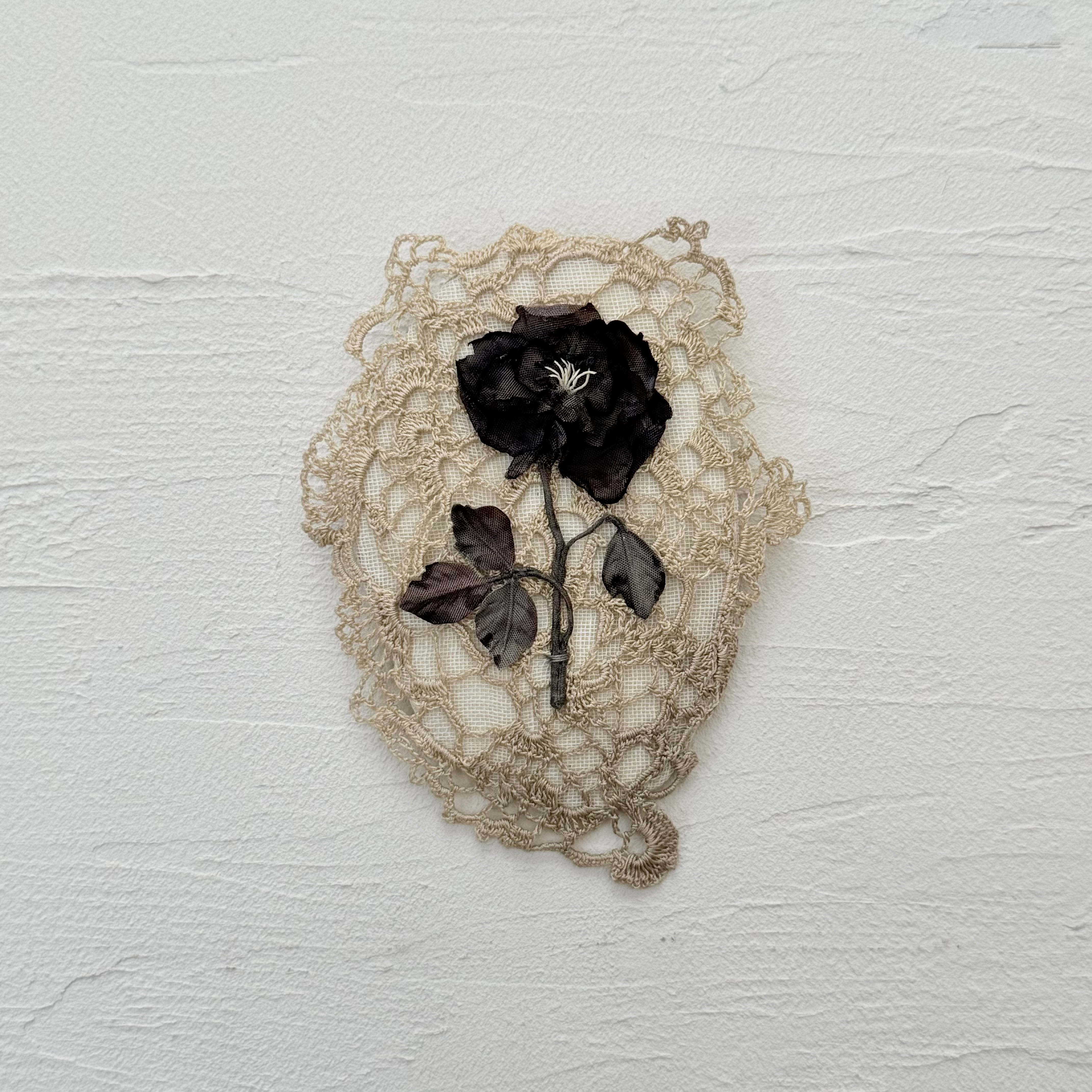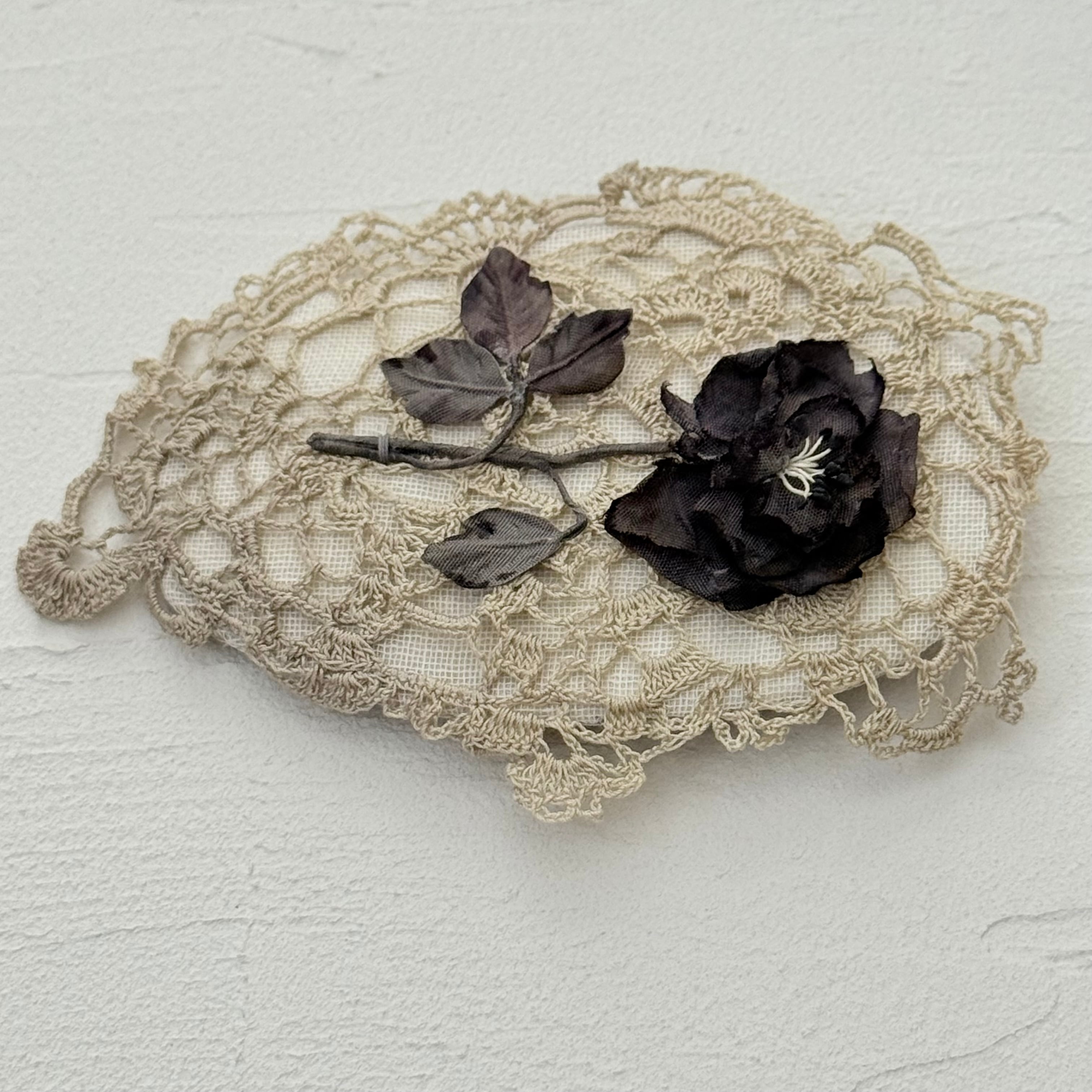 平たくした小さな黒薔薇を一輪、真ん中に。